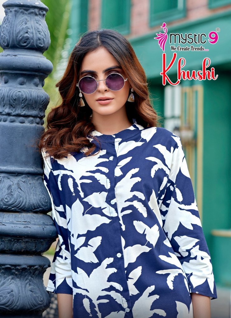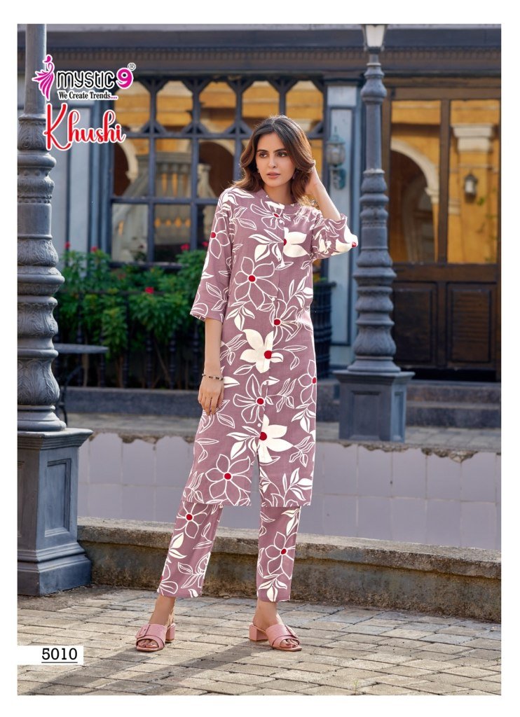 Mystic 9 Khushi Vol 5 Heavy Viscose Printed Co Ord Set with Sleeves Lock And Mandarin Collar Wholesale