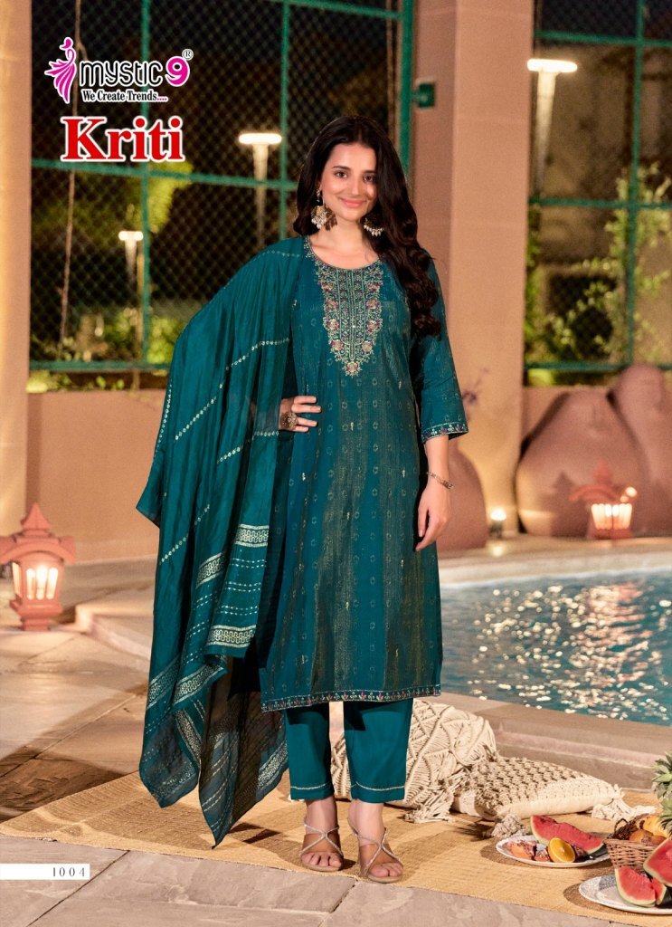 Mystic 9 Kriti Vol 1 Premium Vertican Shimmer Kurti Catalogs Embroidery Wholesale Collection