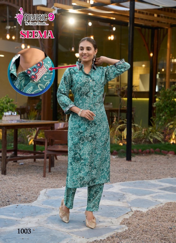 Mystic 9 Seema Vol 1 Designer Vertican Foil Print Co Ord Set with Embroidery And Bottom Exclusive Pocket Wholesale