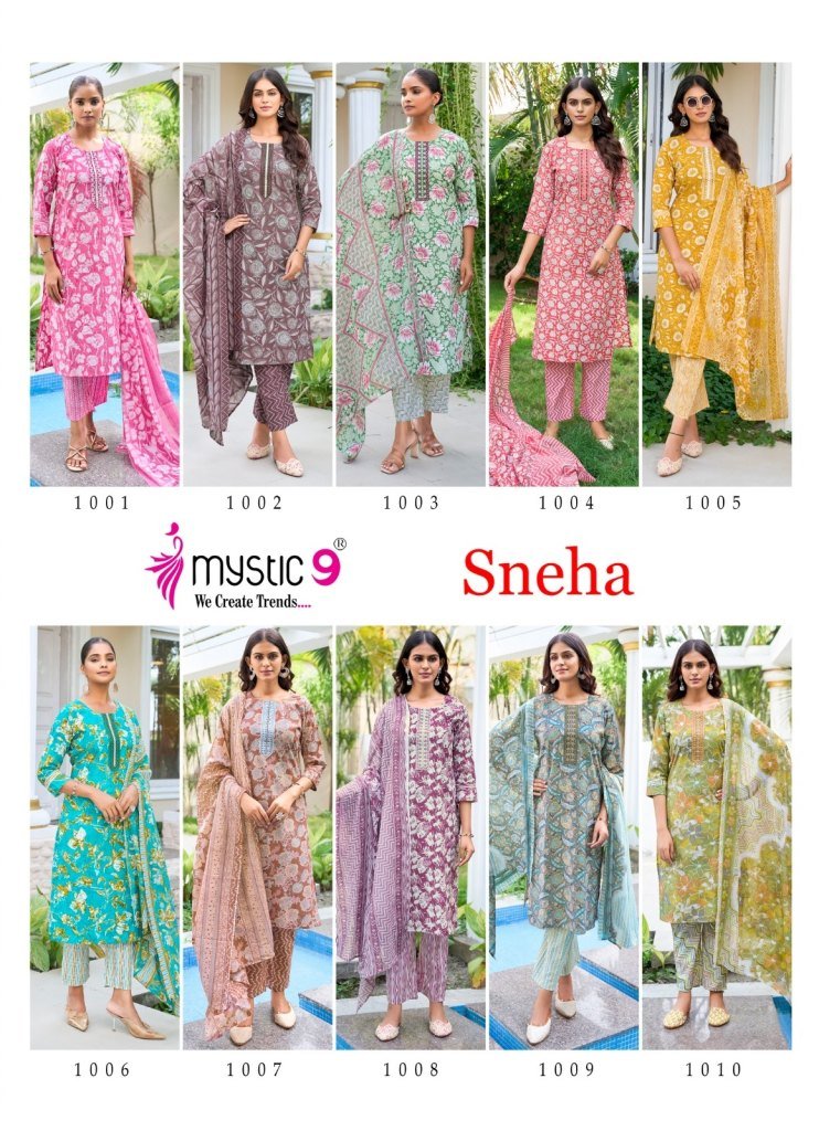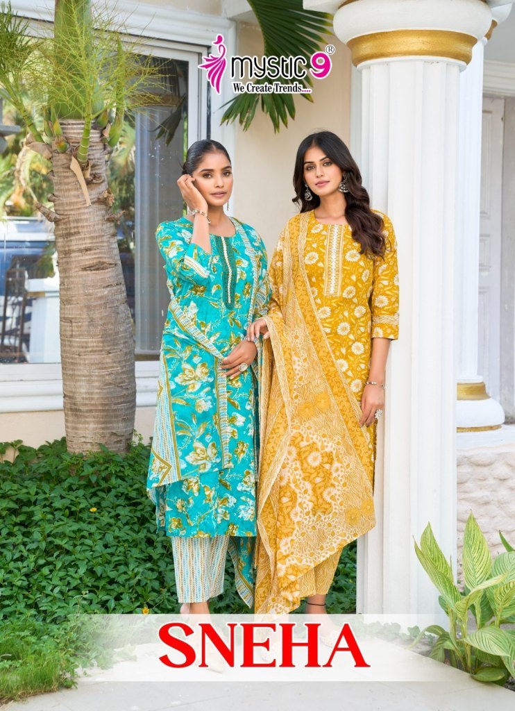 Mystic 9 Sneha Vol 1 Designer Cotton Foil Print Kurti with Pant and Print Cotton Dupatta Wholesale