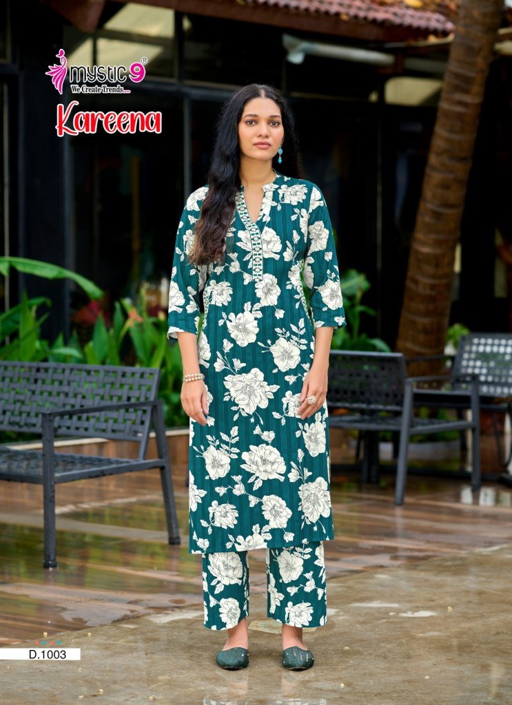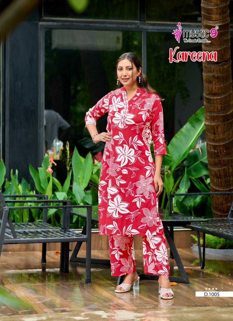 Mystic9 Kareena Vol 1 Rayon Katha Print Coord Set Premium Embroidered Kurti with Plazzo Pants Wholesale