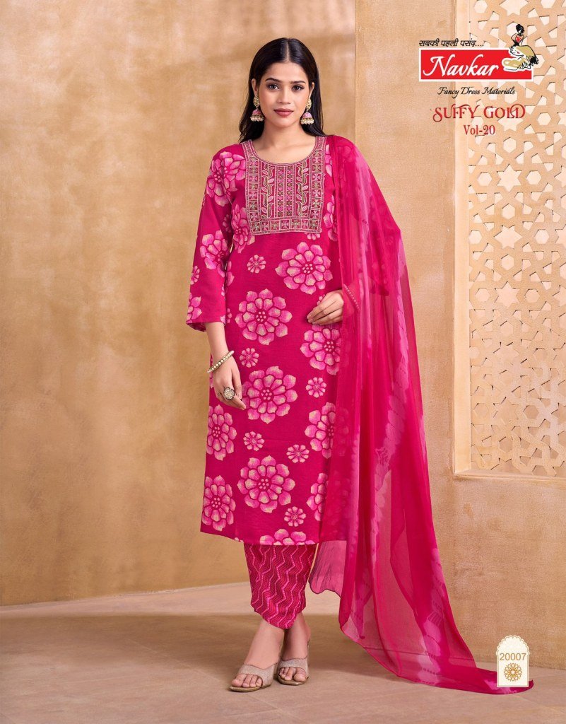Navkar Suffy Gold Vol 20 Designer Embroidery Work Readymade Salwar Kameez Wholesale