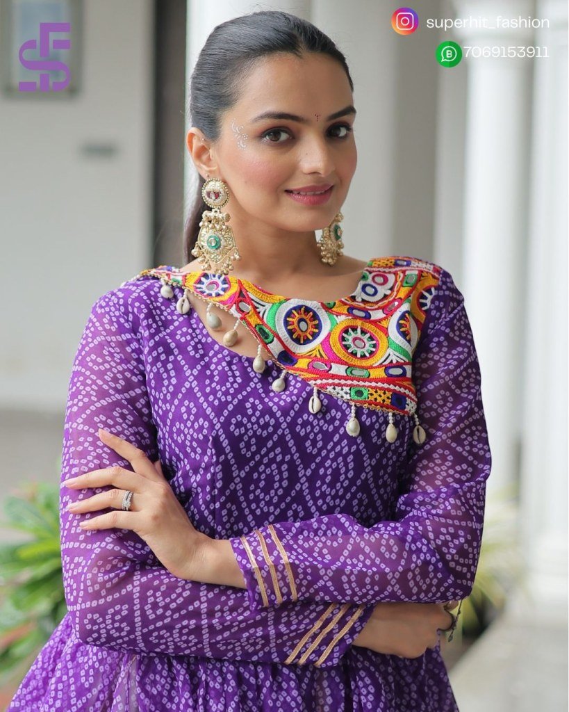 Navratri 1184 Purple Colour Splendor Kora Cotton Lehenga Choli Bandhani Print Kora Cotton Lehenga with Gota Patti And Kutchi Gamthi Patchwork Wh