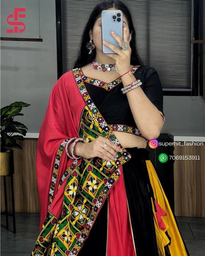 Work: Plain with Real Mirror Kutchhi Work & Border