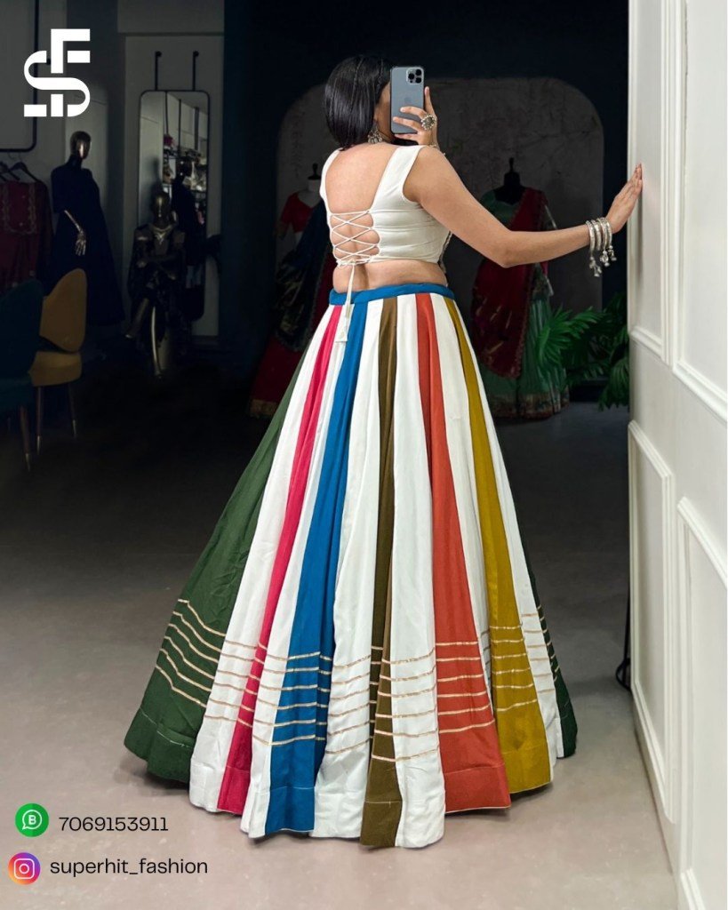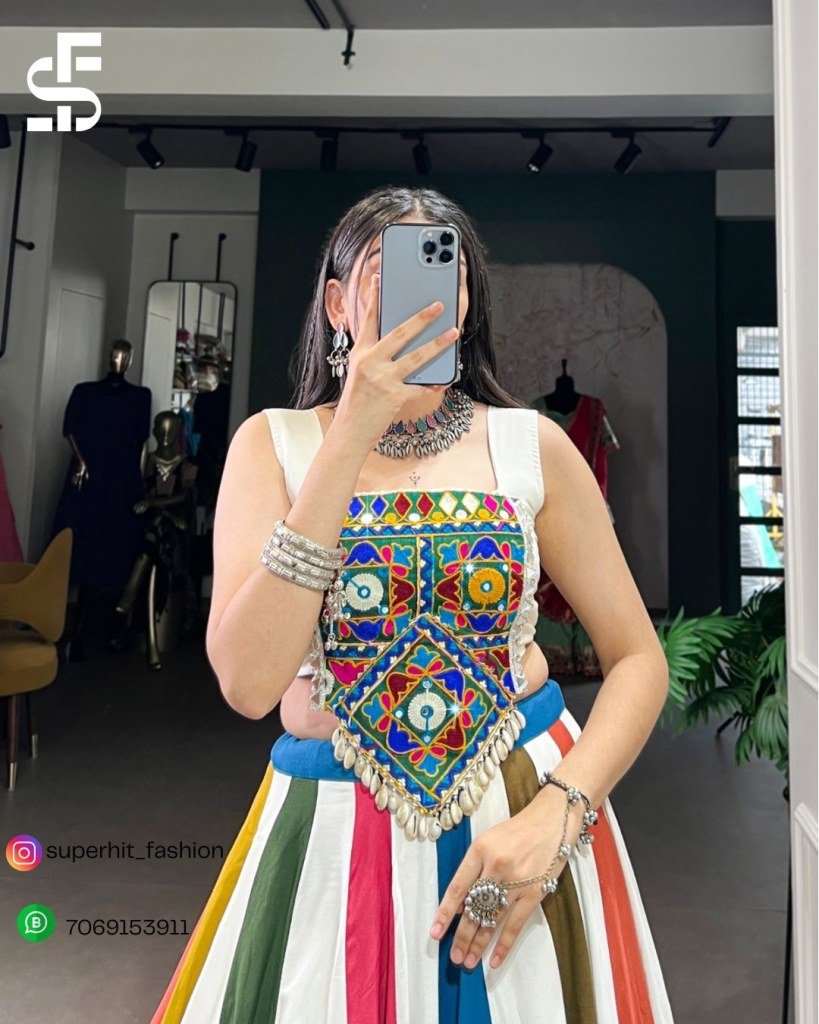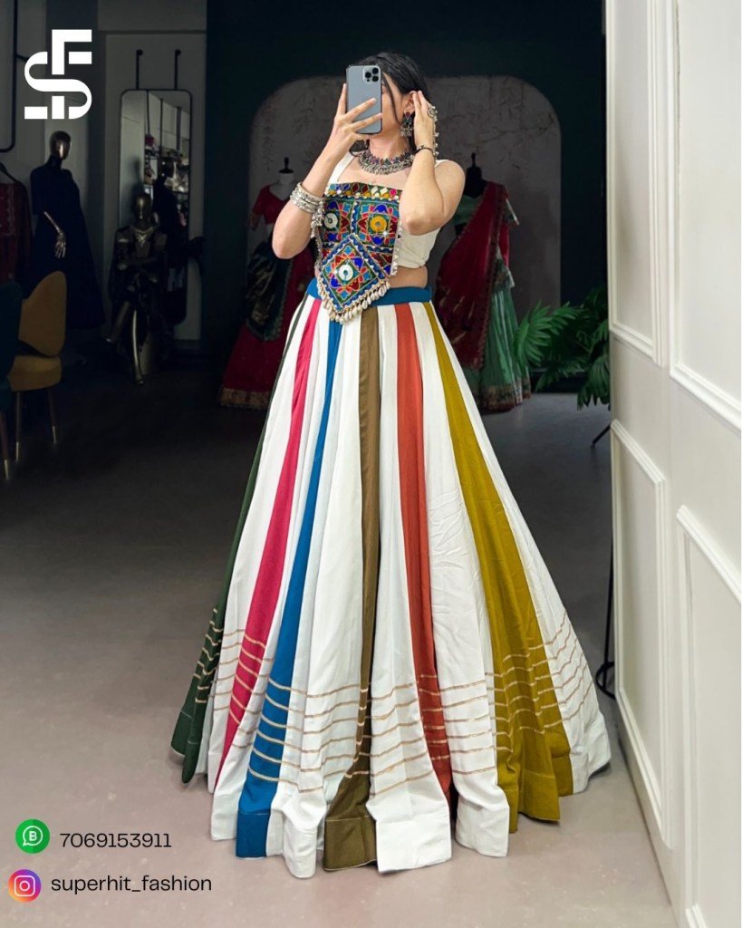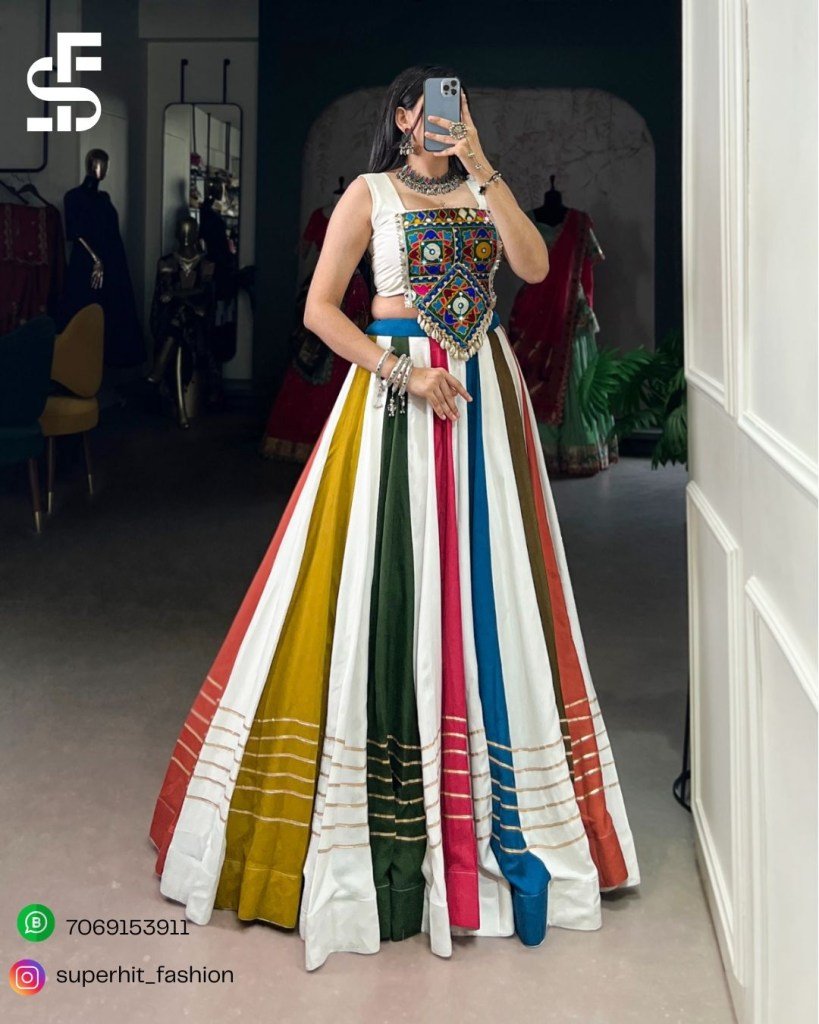 Navratri Collection 1615 White Colour Pure Rayon Mirror Gamthi Work Lehenga Choli with Gota Patti, Jarkan Diamond And Kodi Lace Detailing Kodi Lace wh
