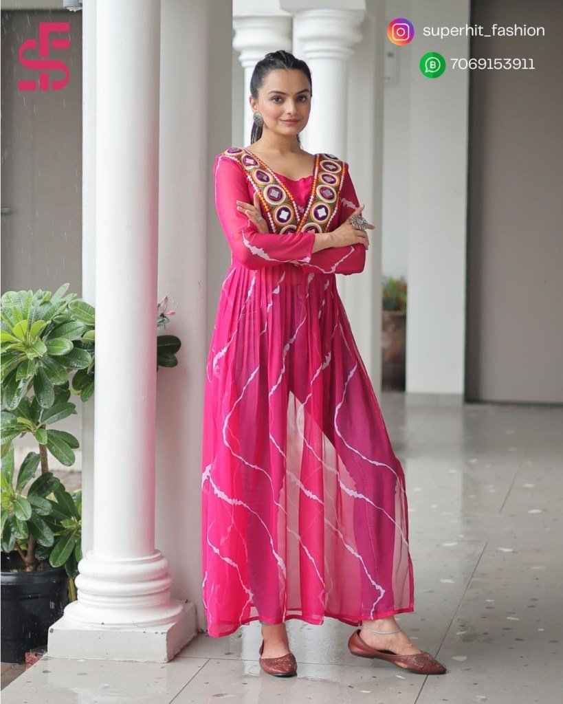 Navratri Festive 1181 Pink Colour Fusion Leheriya Kurti with Kutchi Patchwork in Faux Georgette Wholesale