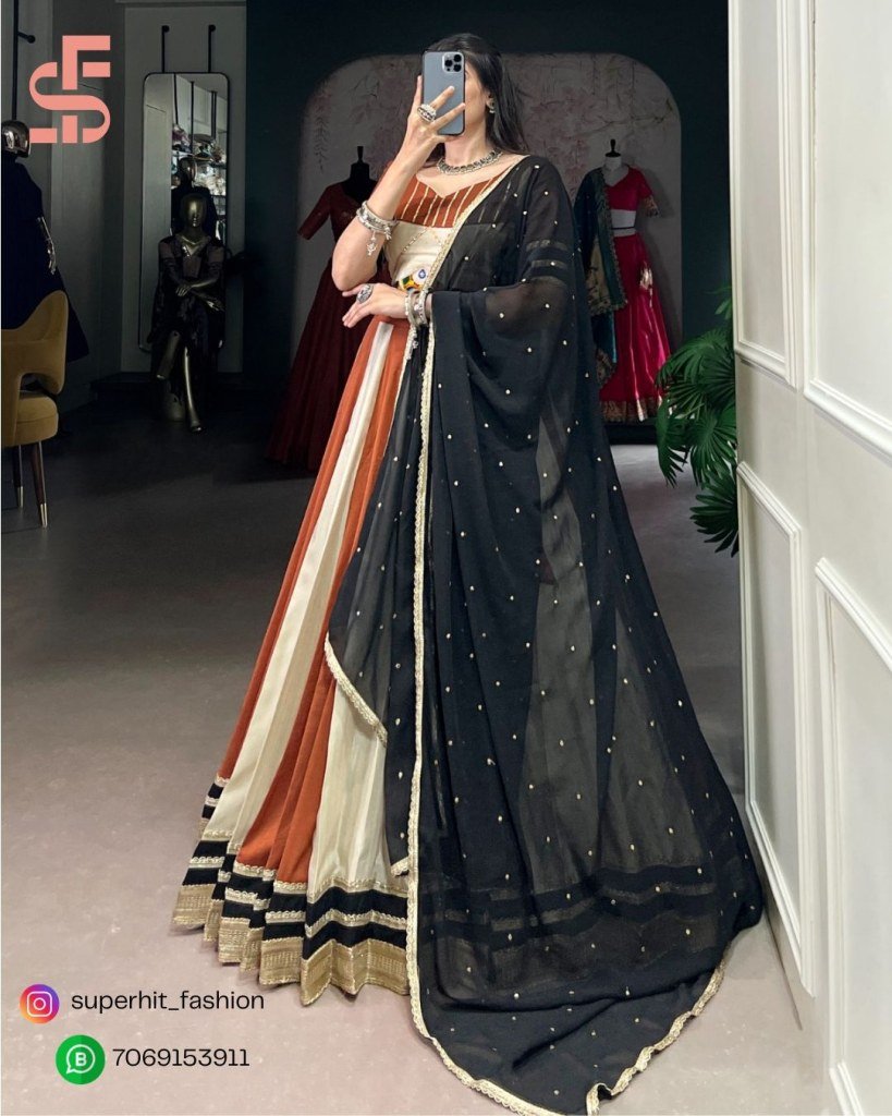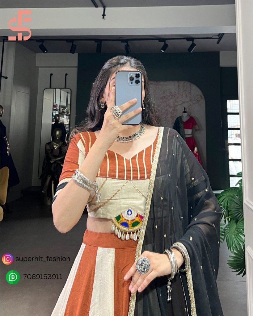 Shine bright this Navratri with our *1614CRM* set! Mirror work, sequins, and happy colors for your festive mood