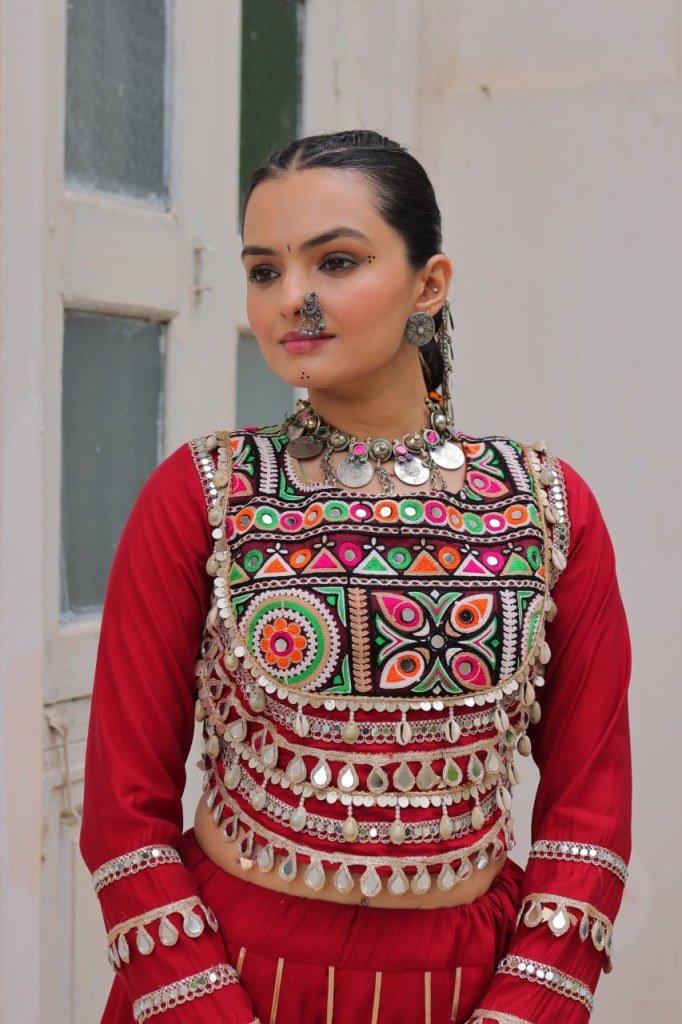 Navratri vibes Are traditional and spiritual, And focus on the fun festive aspects of the festival, So Choose the Different colors Lehenga With Top For the dancing, the devotion, or the sense of our community.