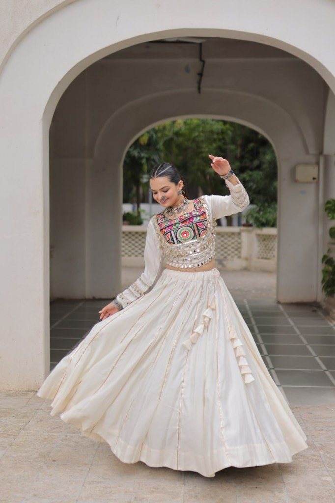 Navratri vibes Are traditional and spiritual, And focus on the fun festive aspects of the festival, So Choose the Different colors Lehenga With Top For the dancing, the devotion, or the sense of our community.