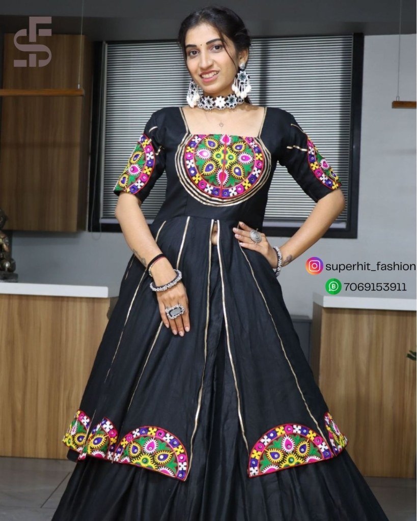 Navratri Special 8030 Balck Colour Pure Rayon Cotton Lehenga Set for Women Real Mirror And Gota Patti Work Zari Border Traditional Kali Design Whole