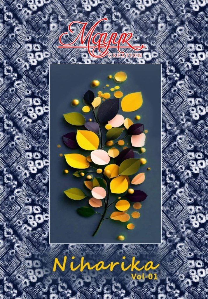 Niharika vol 1 by Mayur Unstitched pure cotton dress material catalogue at affordable rate. Explore Niharika Vol 1 by Mayur featuring premium unstitched pure cotton dress material in elegant prints and vibrant colors. Shop this stylish collection at an affordable rate—perfect for everyday ethnic wear.