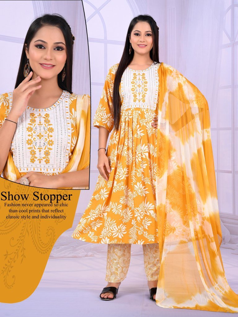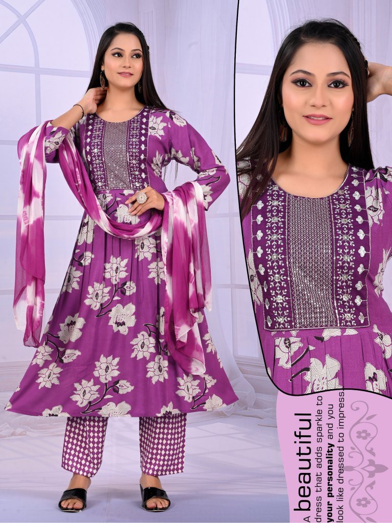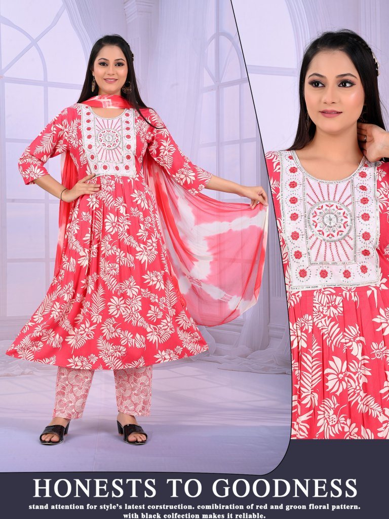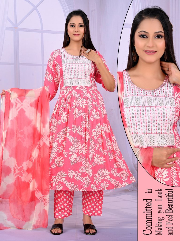 Padmavati Karishma Vol 1 Rayon ODP Print Suit Set with Gala Work And Naznine Saboori Dupatta Wholesale