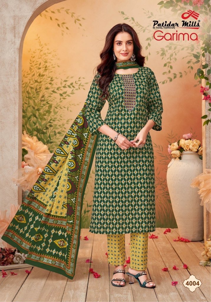 Patidar Garima Vol 4 Designer Cotton Kurti Pant Set with Embroidered Neck And Printed Dupatta Wholesale