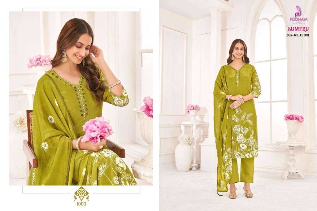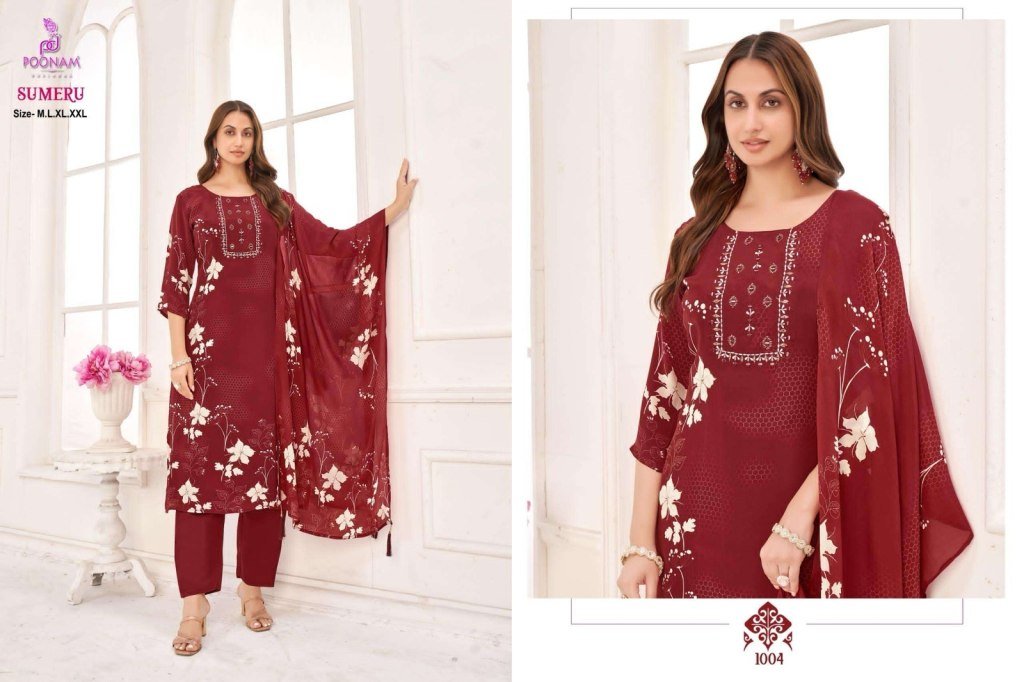 Poonam Designer Sumeru Kurti Pure Crepe, Handcrafted Print, Mal-Mal Cotton Bottom, Georgette Dupatta with Tassels Wholesale