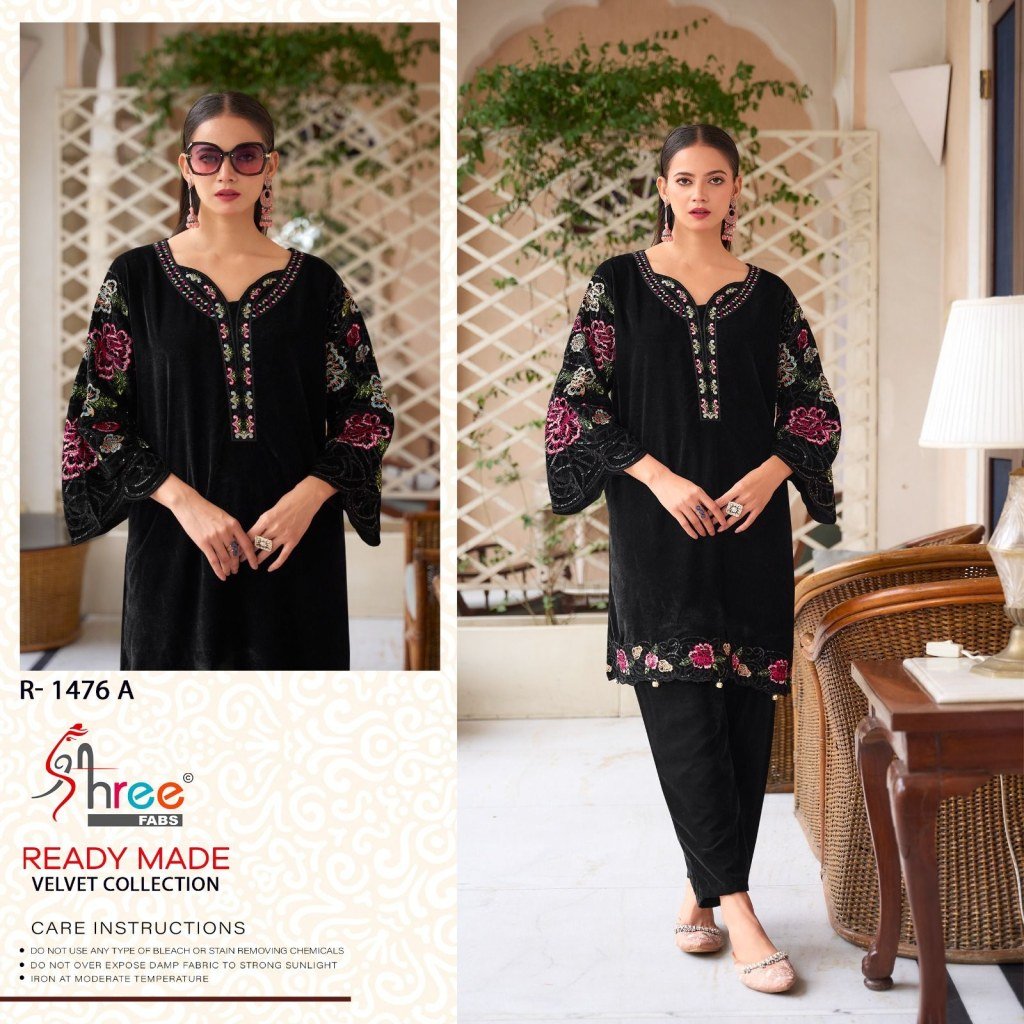 R 1476 by Shree Fab Embroidered designer velvet Kurta with Bottom and dupatta collection