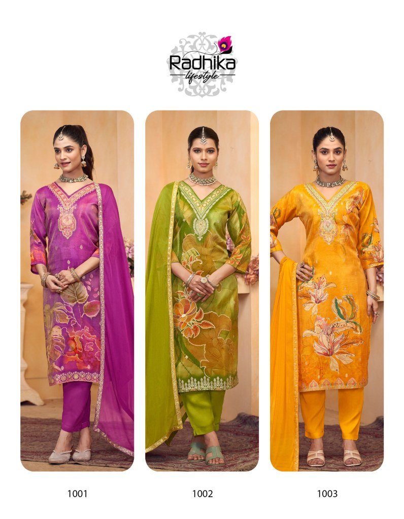 SKU : Radhika Life Style Aanchal Vol 1 Tissue Schimmer Silk Suit with Digital Jacquard Print And Heavy San