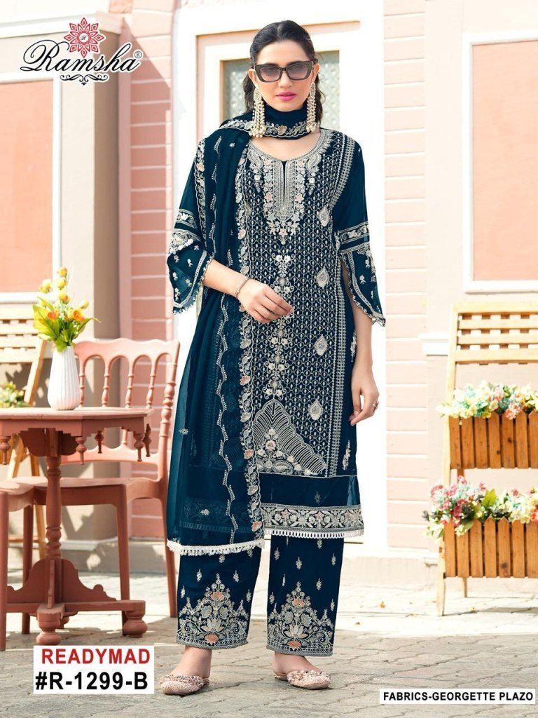 Ramsha R 1299 Elegant Georgette Embroidered Suit Set with Plazo And Georgette Embroidery Dupatta Wholesale