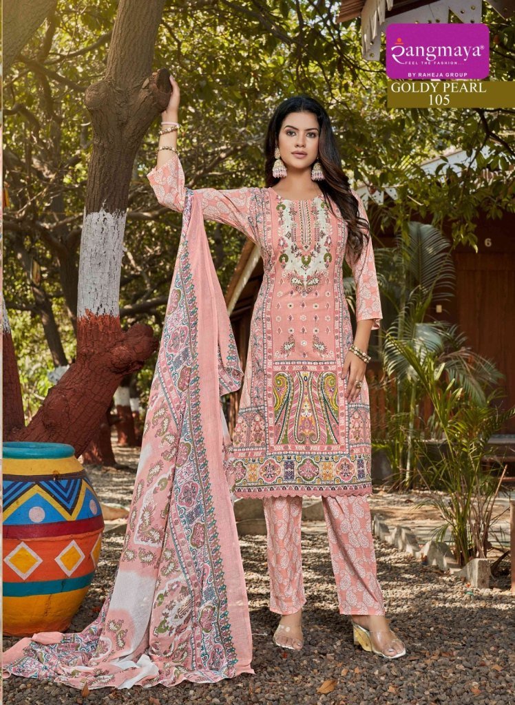 Rangmaya Goldy Pearl Cotton Kurti with Pant Dupatta Elegant Ethnic Set Wholesale