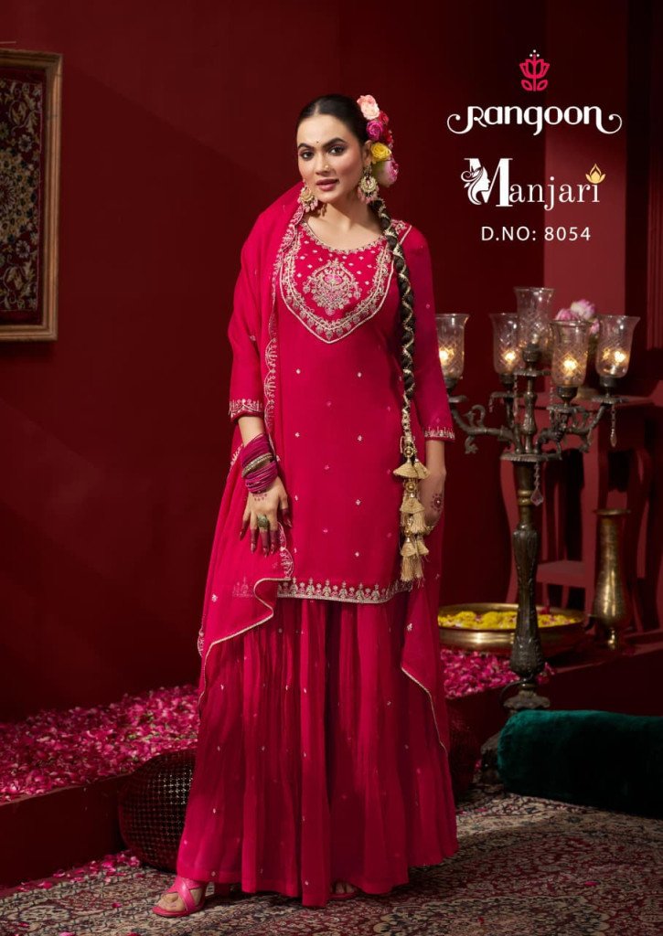 Rangoon Manjari Chiffon Top And Palazzo Suit with Heavy Dupatta Wholesale Product