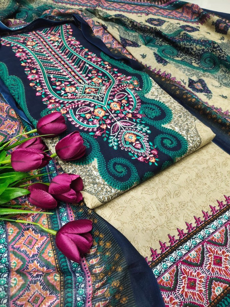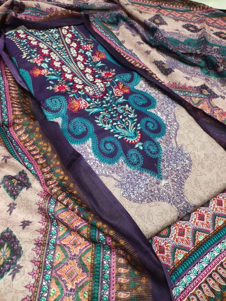 Top: 100% Pure Cotton Digital Prints with Exclusive Heavy Self Embroidery (2.50 mtrs apx)