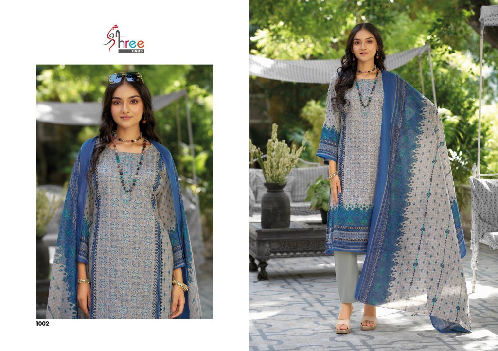 Riwayat Lawn Emb Collection 2025 Pure Lawn Cotton Top And Semi Lawn Bottom with Mal Mal Cotton Dupatta
