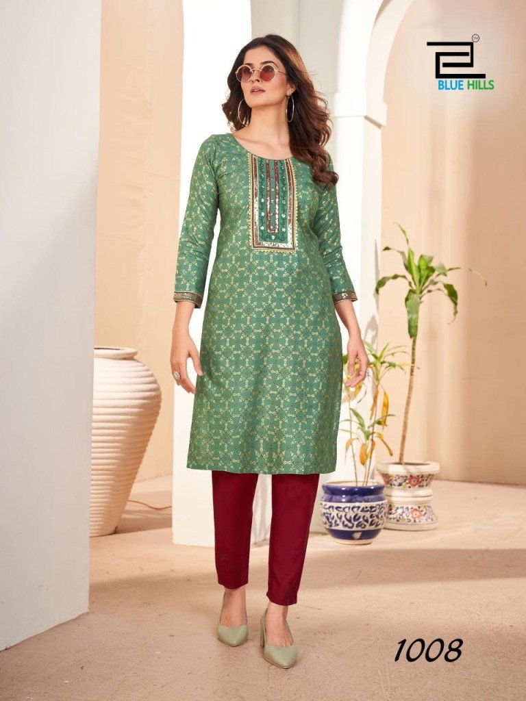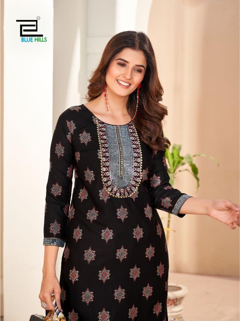 The Royal Queen by Blue Hills, featuring elegant Zari and sequence embroidered Kurtis. Designed for sophistication and style, this collection is available at a low rate. Perfect for festive and casual occasions.
