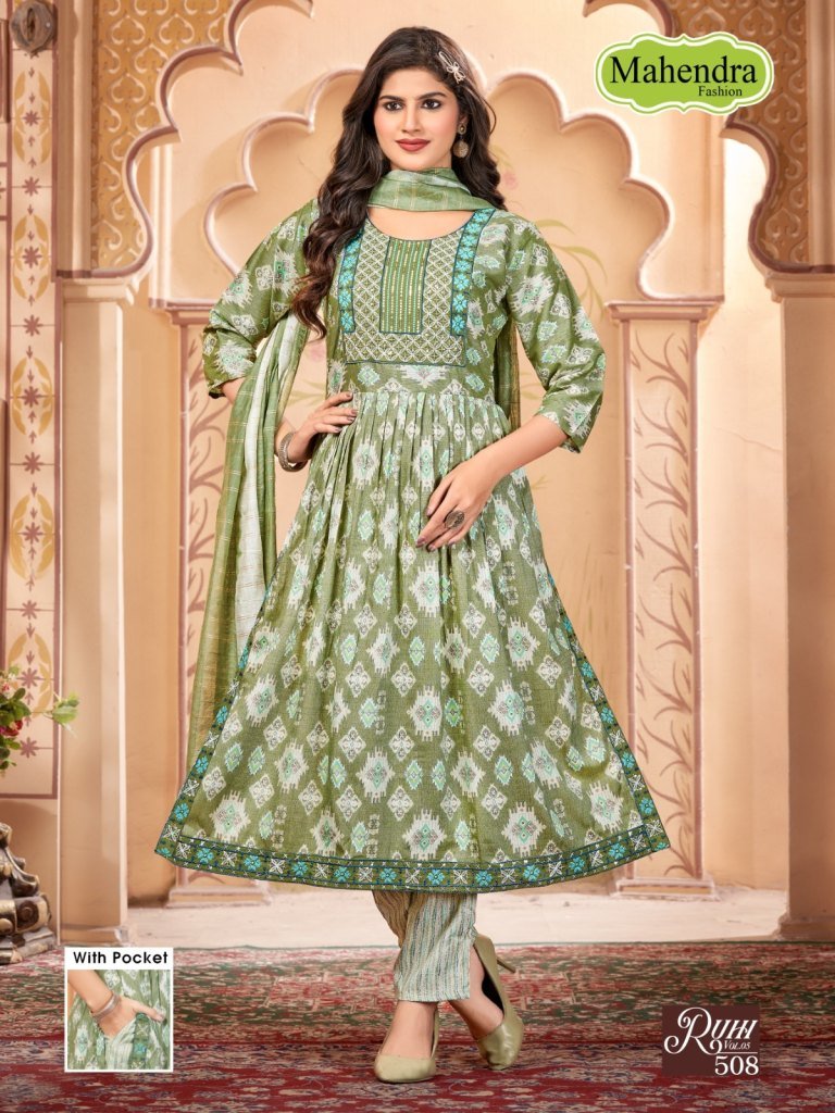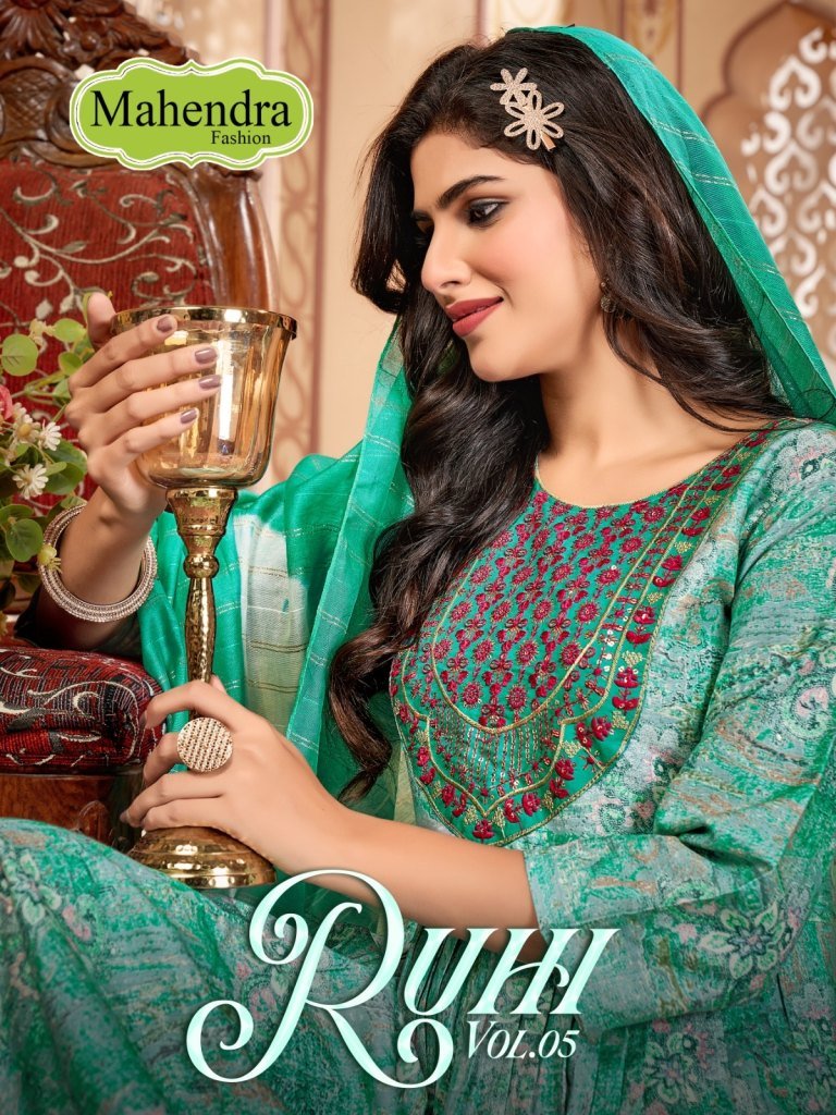 Ruhi vol 5 by Mahendra Fashion Fancy Capsule printed anarkali suit with embroidered work at low price, Ruhi Vol 5 by Mahendra Fashion, featuring exquisite capsule-printed Anarkali suits with intricate embroidered work. Perfect for festive and casual occasions, available now at a low price.