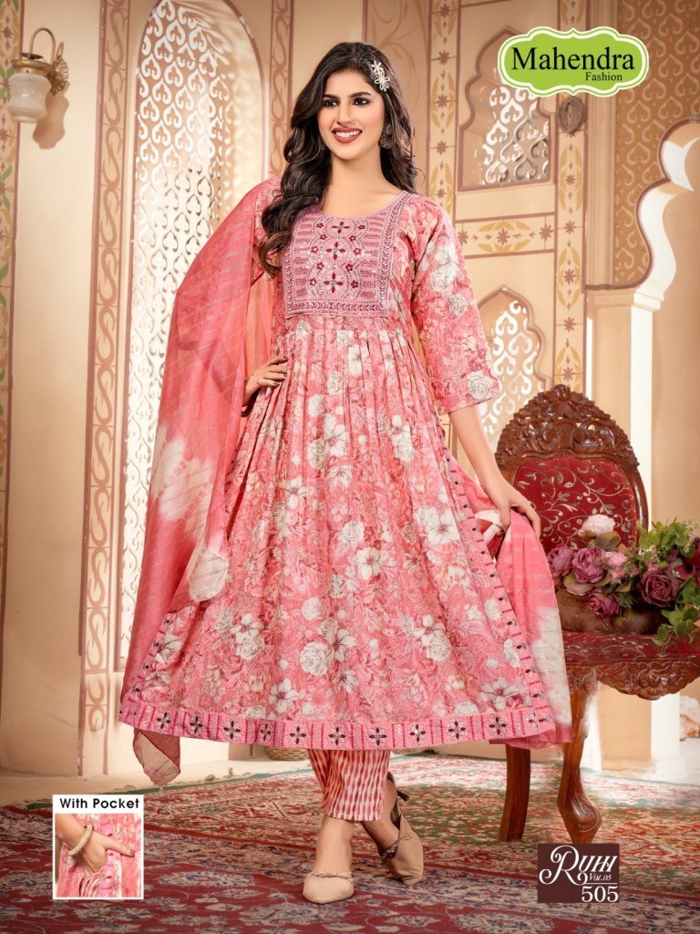 Ruhi vol 5 by Mahendra Fashion Fancy Capsule printed anarkali suit with embroidered work at low price