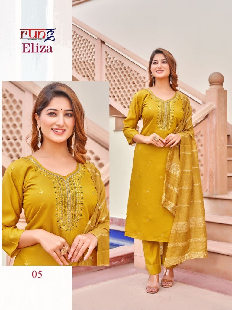 Rung by Eliza heavy roman silk embroidered readymade designer suit catalogue at low rate, We are excited to unveil our much-anticipated Festive Collection, a compilation of four exquisite traditional garment variants that pay homage to our rich cultural heritage while embracing modern design aesthetics. The Festive Collection BY this catalogue is a treasure trove of timeless elegance and craftsmanship, making your celebrations truly memorable.