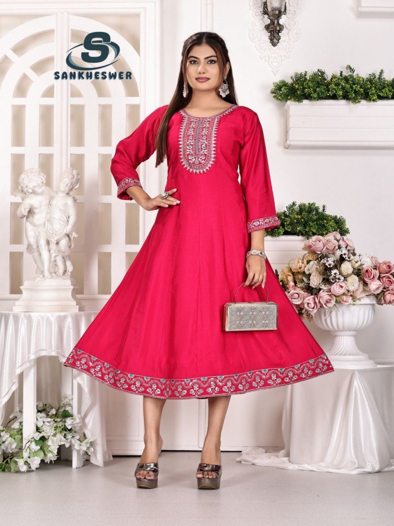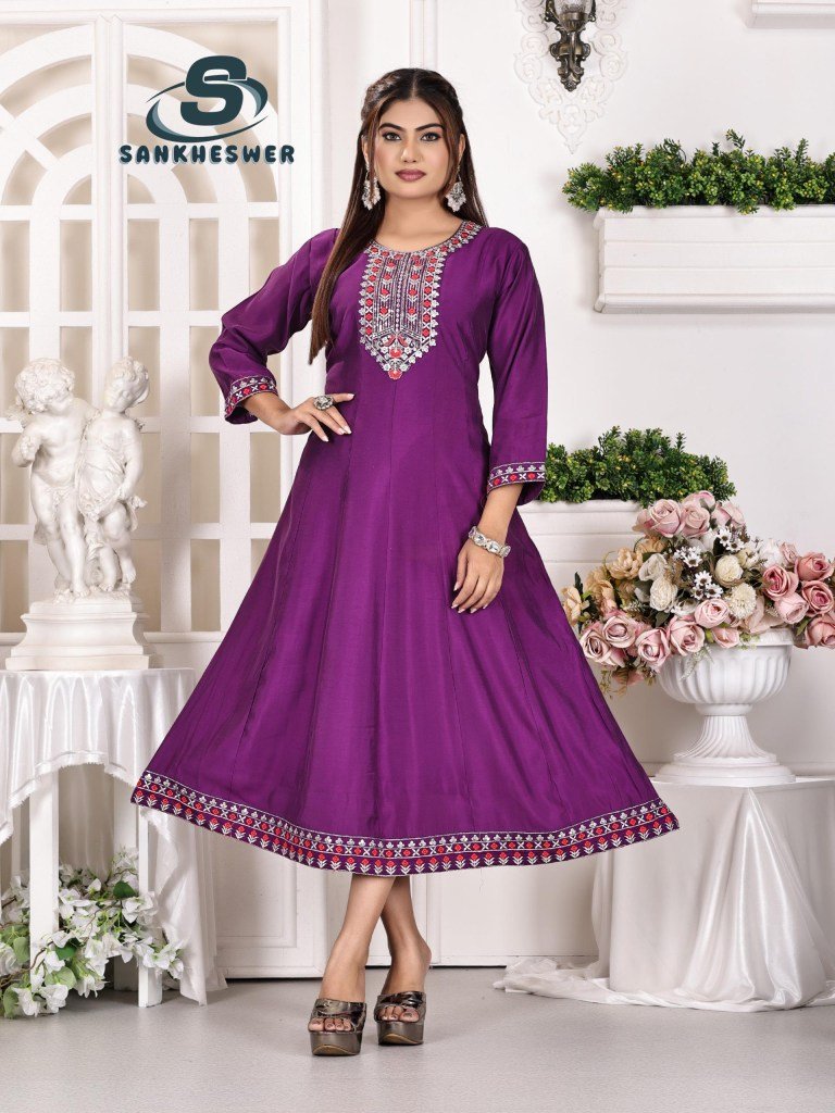 Sankheswer Anarkali Vol 1 Roman Silk Top with Neck Work Crepe Fancy anarkali suit Inner Wholesale