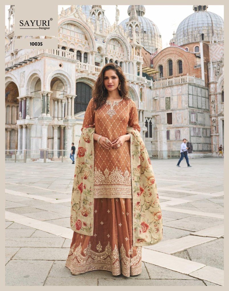 Sayuri Designer Taj Catalog Premium Real Simar Silk And Chinon Embroidered Sharara Set Wholesale Festive Wear