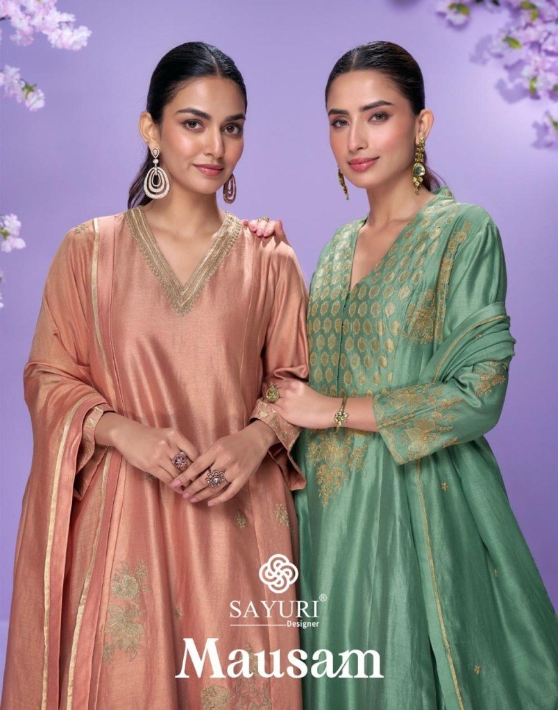 Sayuri Mausam Real Premium Roman Silk Embroidered Long Cut Top with Palazzo Pant And Organza Dupatta Wholesa