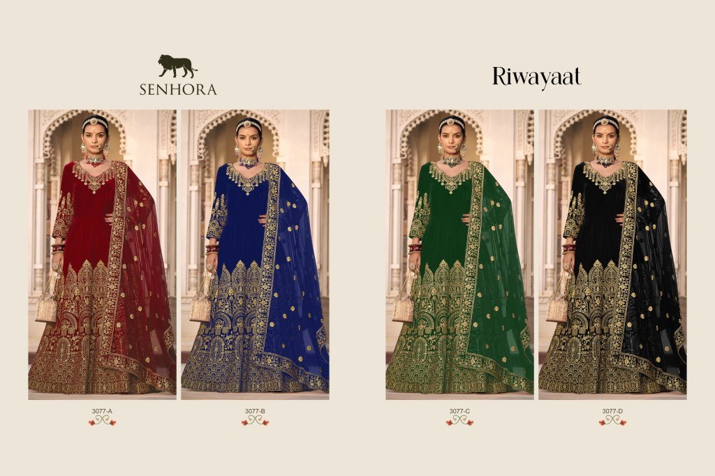 Senhora by riwayat velvet front and back embroidered long anarkali gown with dupatta catalogue at wholesale price, We are excited to unveil our much-anticipated Festive Collection, a compilation of four exquisite traditional garment variants that pay homage to our rich cultural heritage while embracing modern design aesthetics. The Festive Collection BY this catalogue is a treasure trove of timeless elegance and craftsmanship, making your celebrations truly memorable.