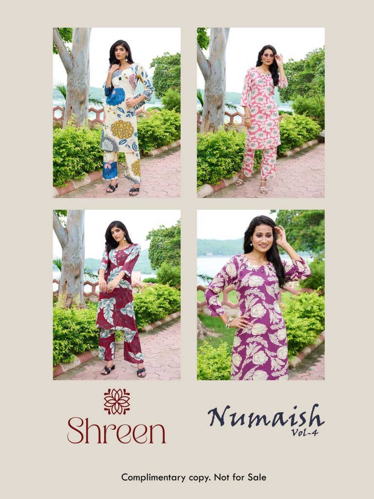 Shreen Kurti Numaish Vol 4 Mirror Breeze Designer Rayon A Line Co Ord Set Wholesale
