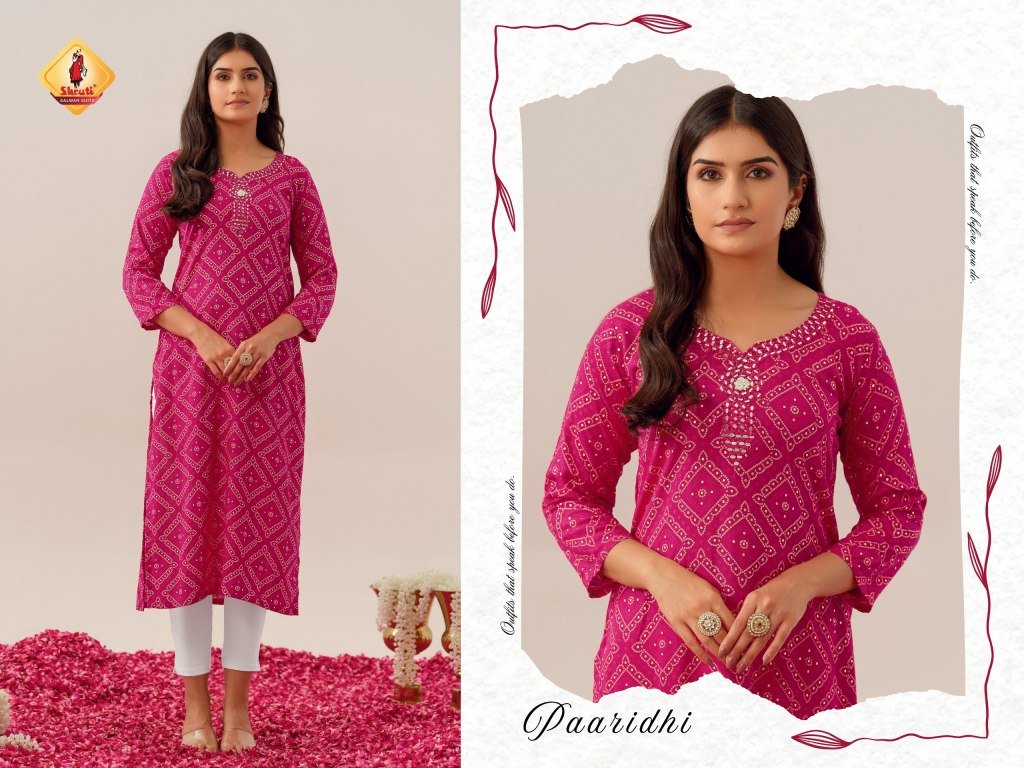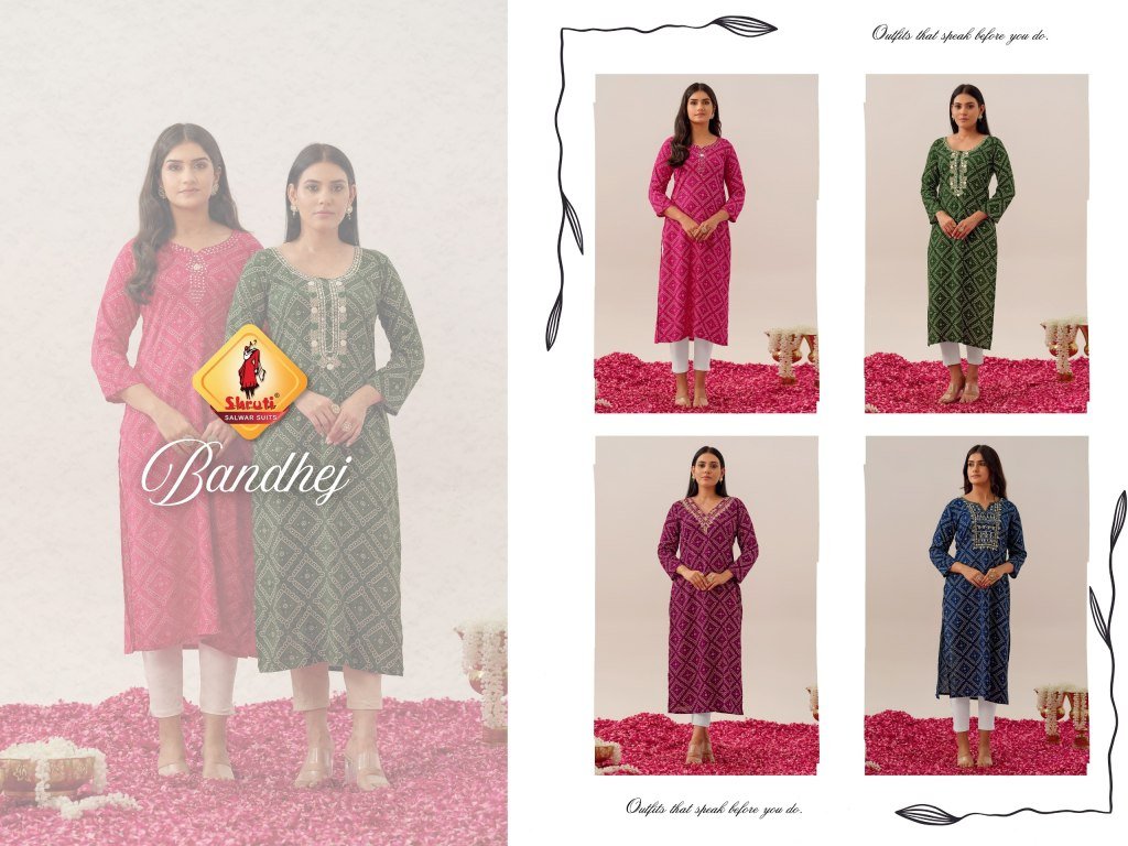Shruti Suit Bandhej Vol 7 Evergreen Bandhani Modal Rayon Kurti with Hand Mirror And Thread Embroidery Kurti Wholesale