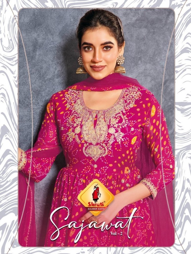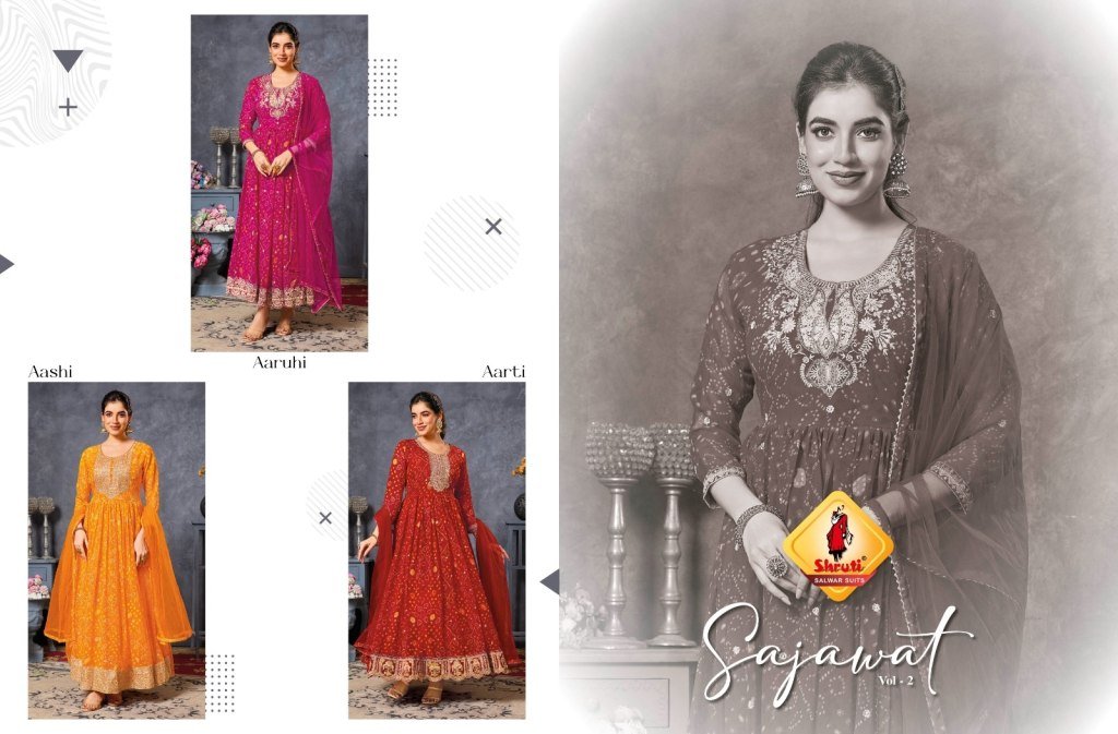 Shruti Suits Sajavat 2 Premium Soft Georgette Bandhani Gown with Thread And Sequin Embroidery Wholesale