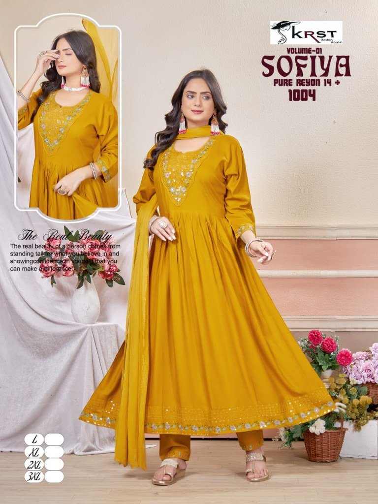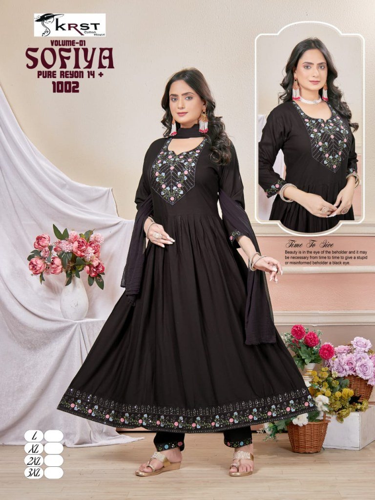 Sofia 3Pcs Vol New Pure Reyon Long Ghera Kurti Set with Work Dupatta Neptol Design Wholesale Catalogs