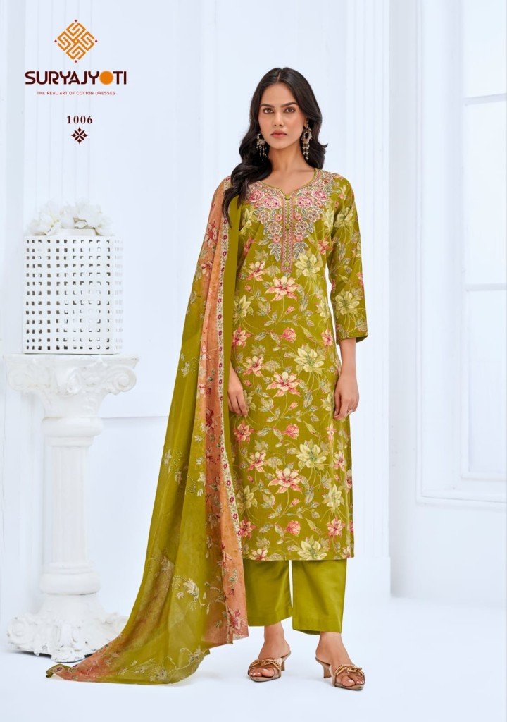 Suryajyoti Kala Vol 1 Designer Cotton Kurti Pant Set with Heavy Neck Work And Dupatta Wholesale