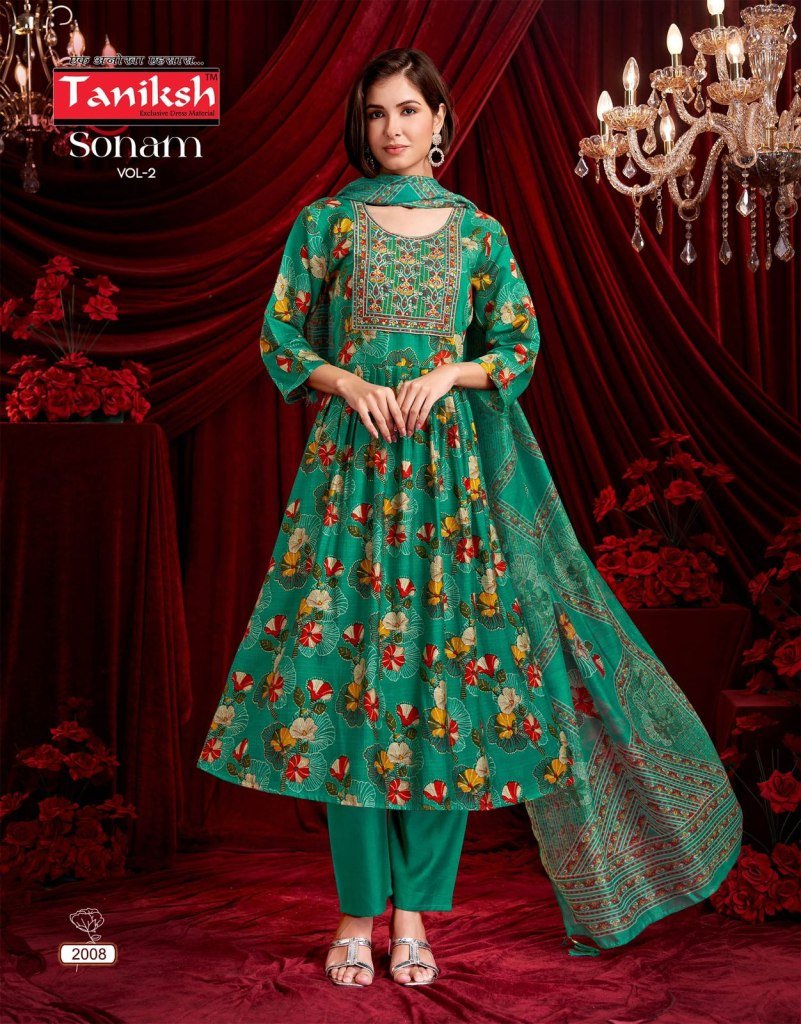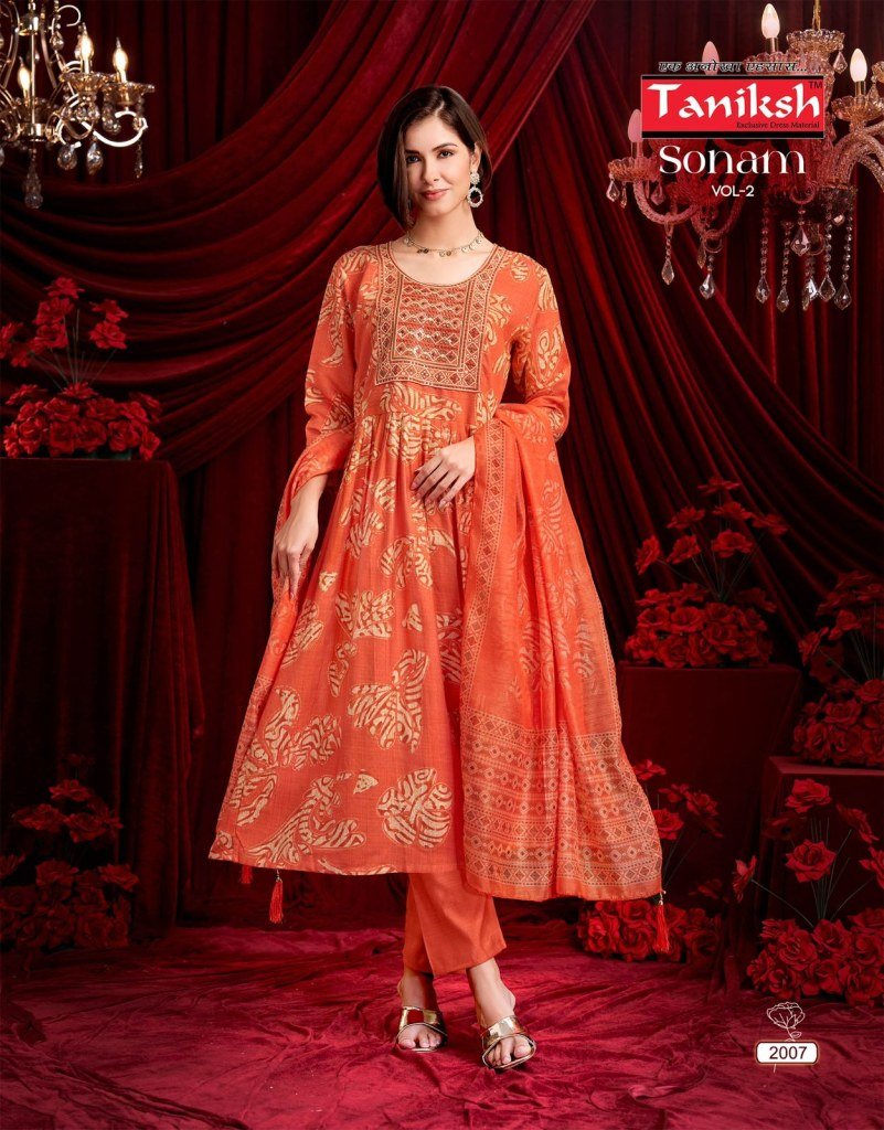Taniksh Sonam Vol 2 Readymade Anarkali Set Vertical Discharge Print with Embroidery And Digital Dupatta Wholesale