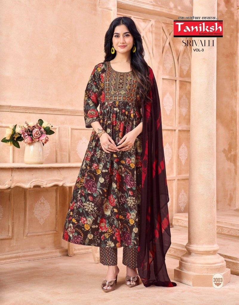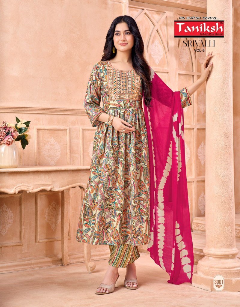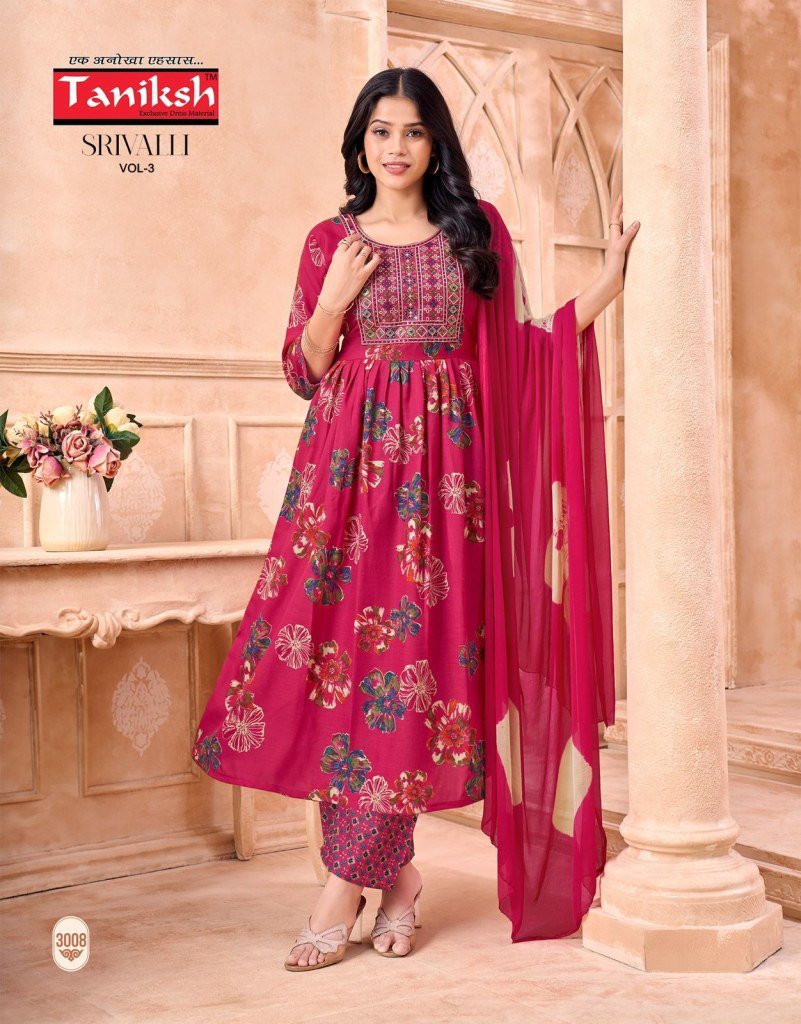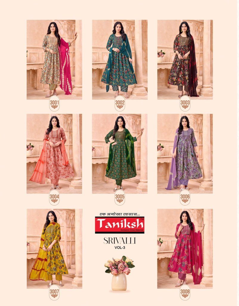 Taniksh Srivalli Vol 3 Readymade Anarkali Suit Set with Embroidery And Nazmin Dupatta Wholesale