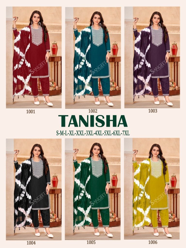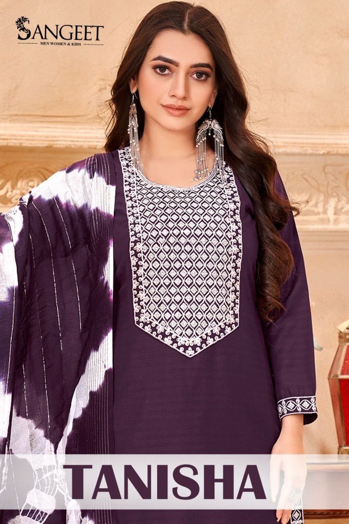 Tanisha reyon fancy kurti pant with neck work and printed dupatta