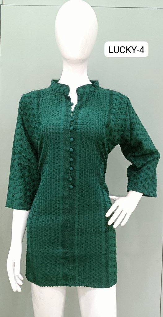 Tunic House Chikankari Short Top Viscose Rayon, Full Lucknowi Work Front, Back And Sleeves Wholesale