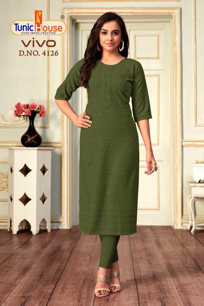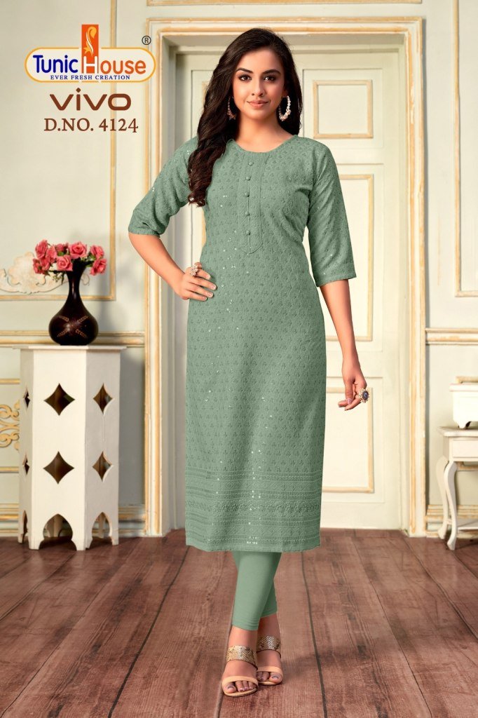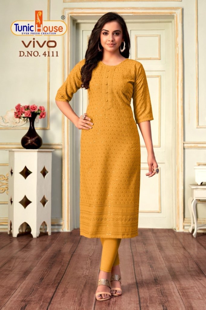 Tunic House Vivo Lucknowi Sequence Kurti Viscose Rayon, All-Side Sequin Embroidery With Pocket Wholesale