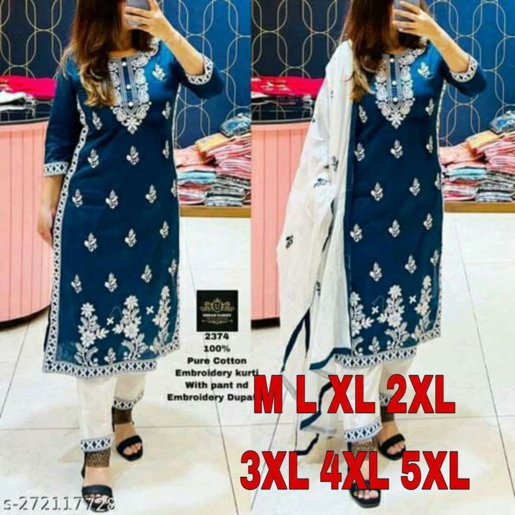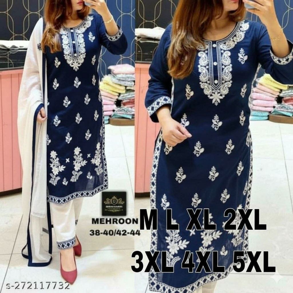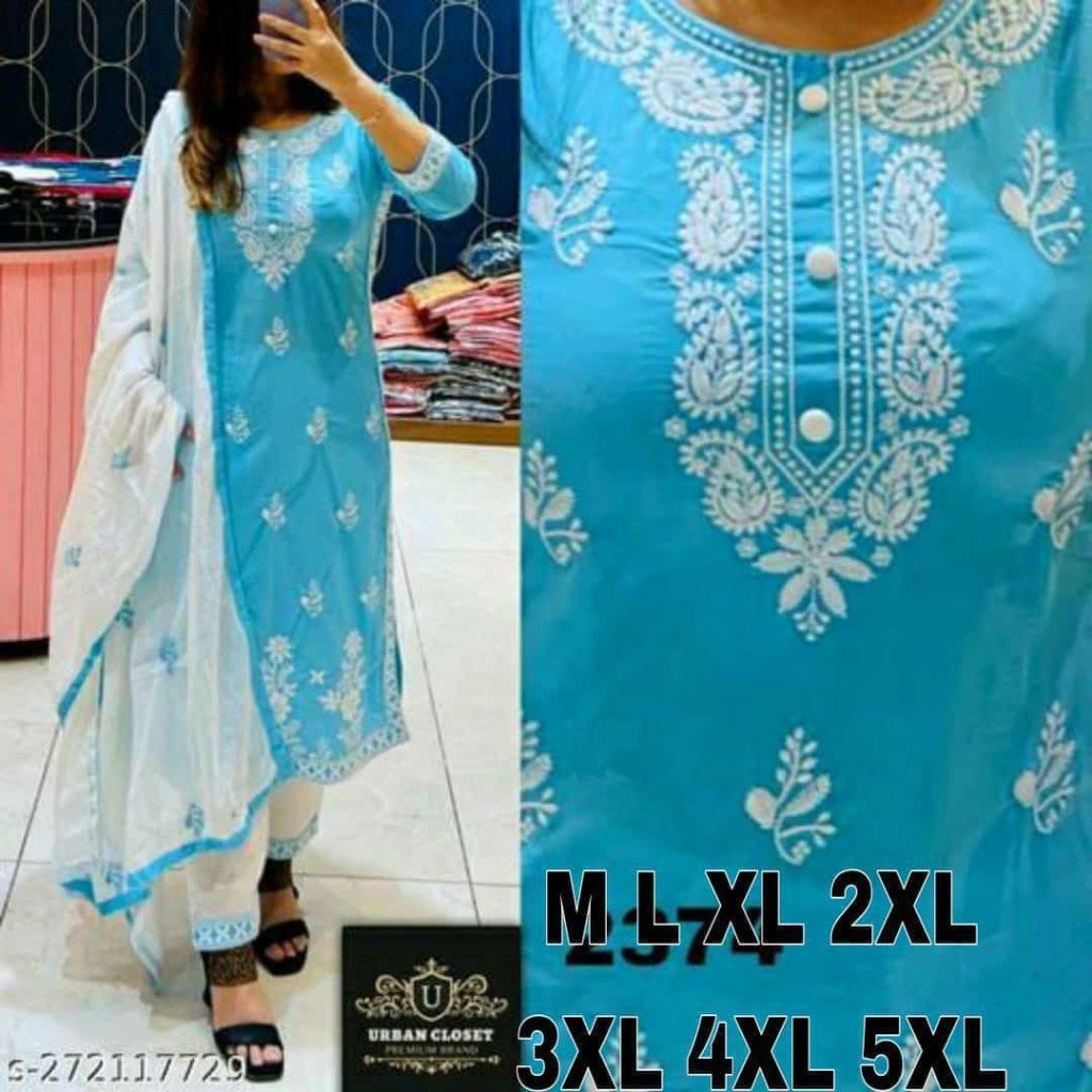 KURTI HEAVY RAYON COTTON FABRIC WID CHICKEN KARI STYLE EMBROIDERY WORK