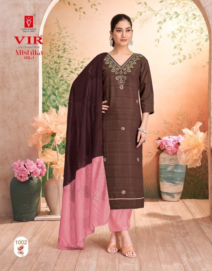 VIR Mishika Vol 1 Elegant Vertican Summer Fabric Set with Handwork And Pure Cotton Embroidery Lining Dupatta Wholesale