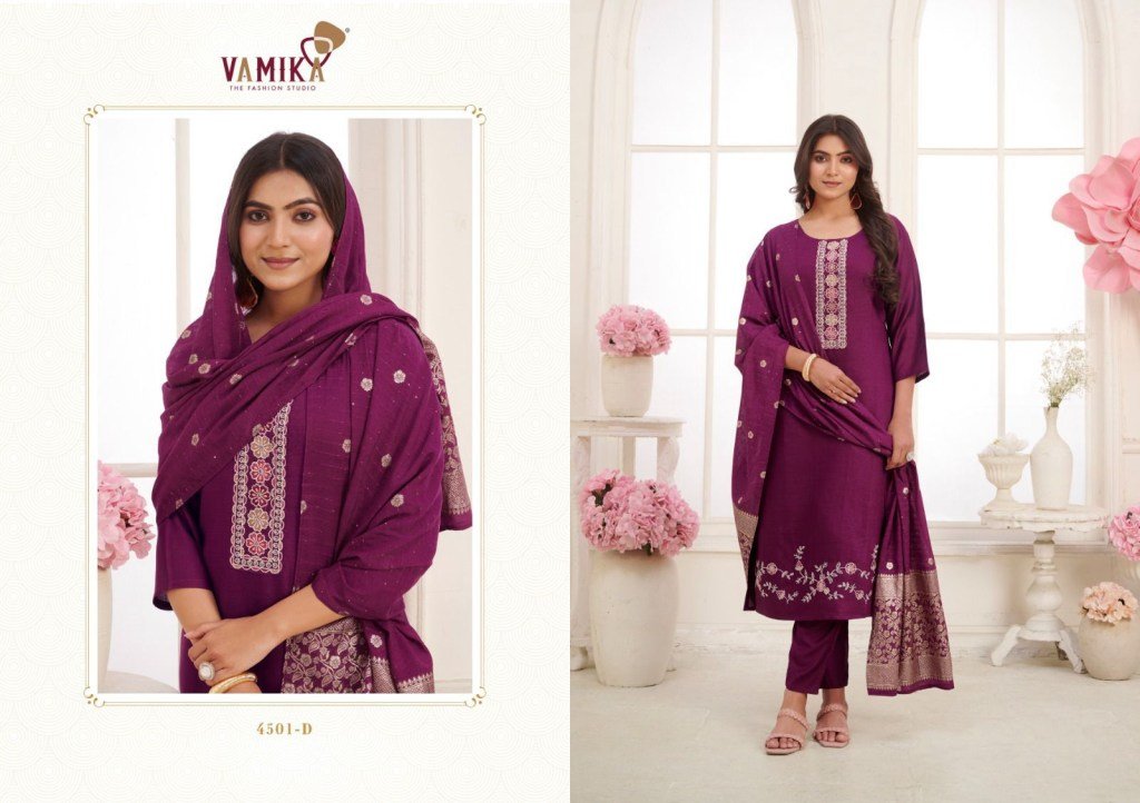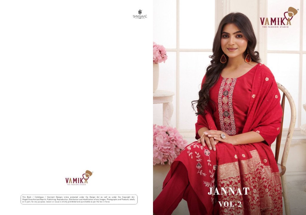 Vamika Jannat Vol 02 Elegant Heavy Viscose Silk Handworked Suit with Organza Digital Print Dupatta Wholesale