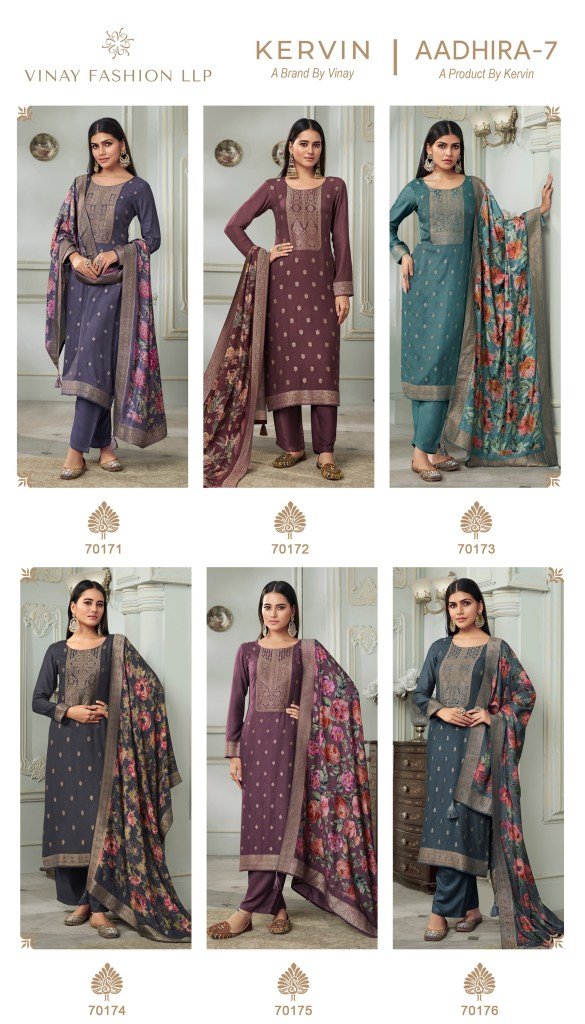 Vinay Kervin Aadhira Vol 7 Design No 70171 to 70176 Series Viscous Pashmina Unstitched Winter Collection Suits
