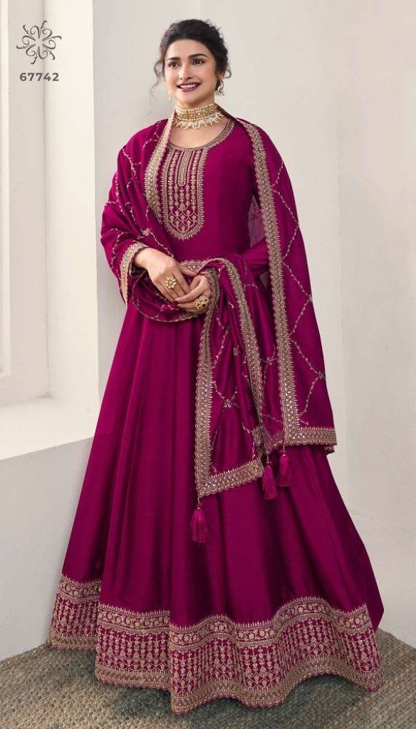 Vinay Kuleesh Aaliya Vol 2 Design No 67741 to 67746 Designer Embroidered Silk Georgette Anarkali Dress Wholesale Rate