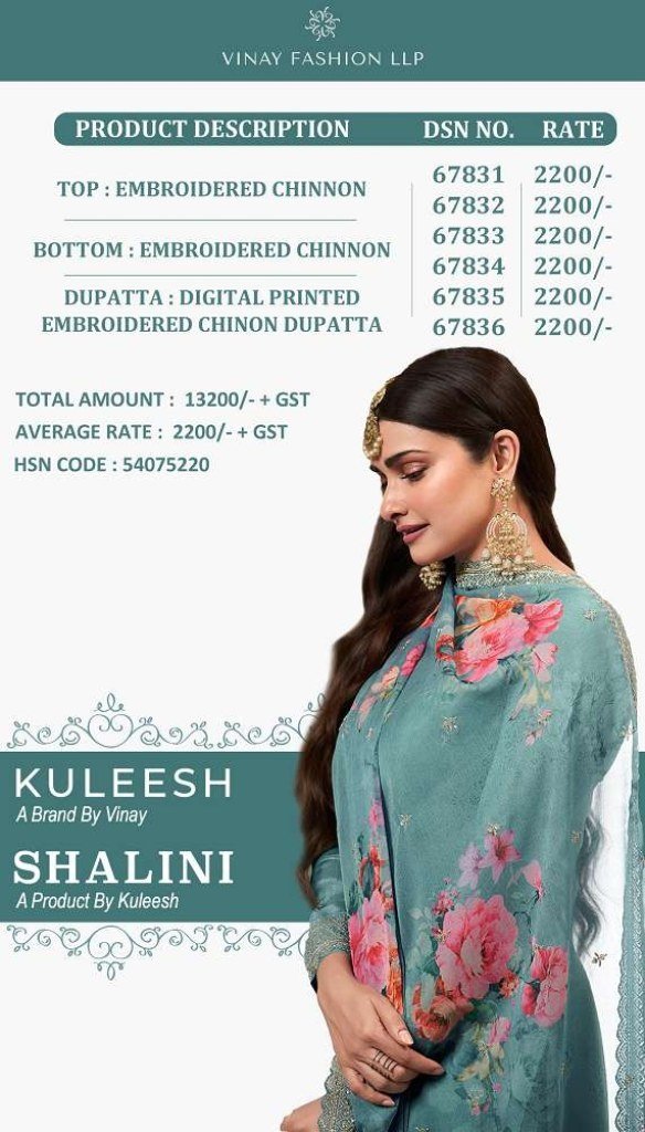 SKU : Vinay Kuleesh Shalini Design No 67831 To 67836