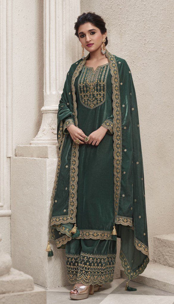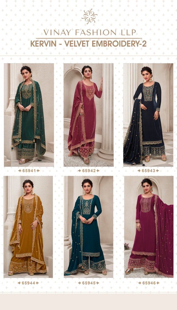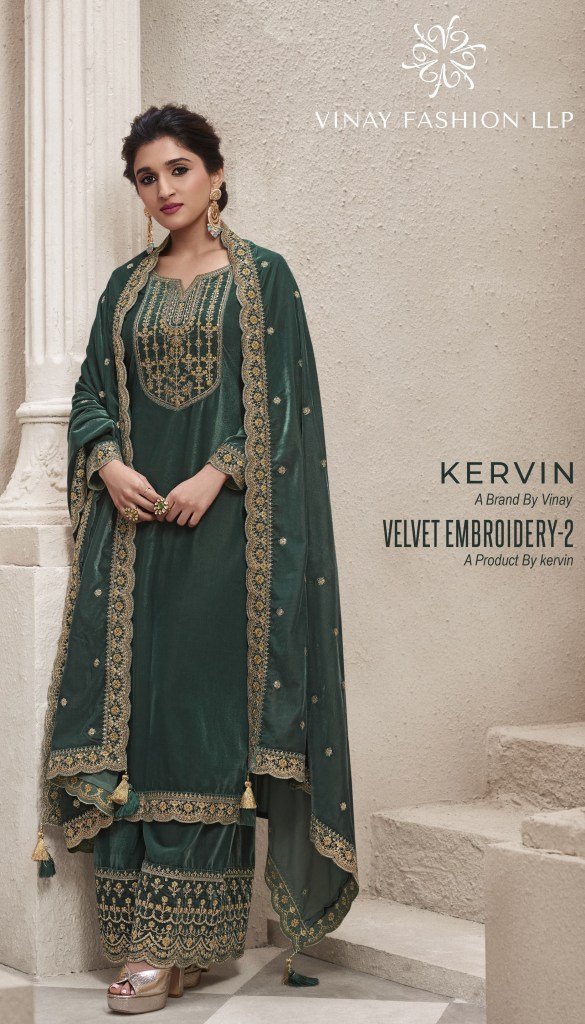 Vinay fashion by kervin designer heavy velvet embroidered salwar kameez catalogue at wholesale price